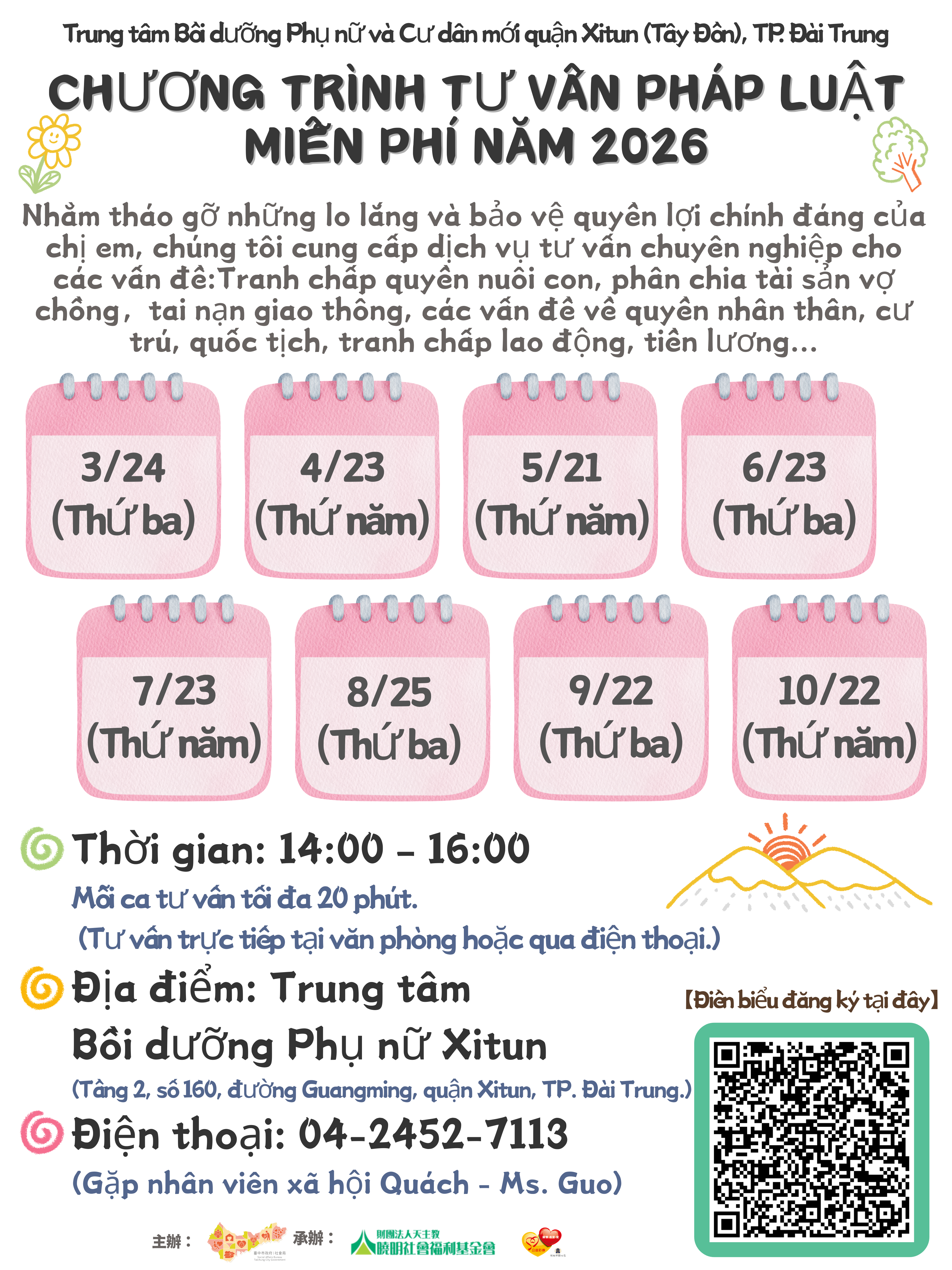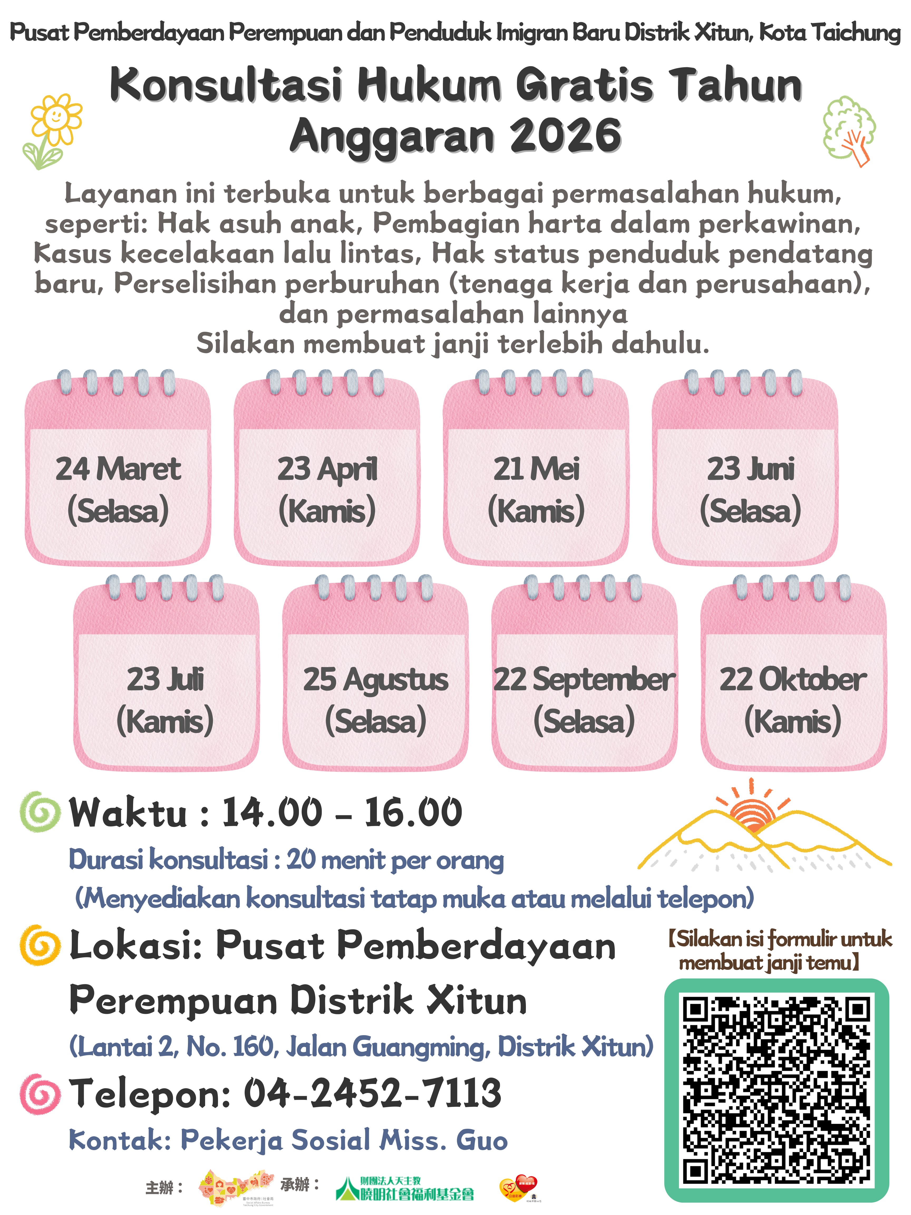費用:全程免費,每人20分鐘,由律師一對一說明